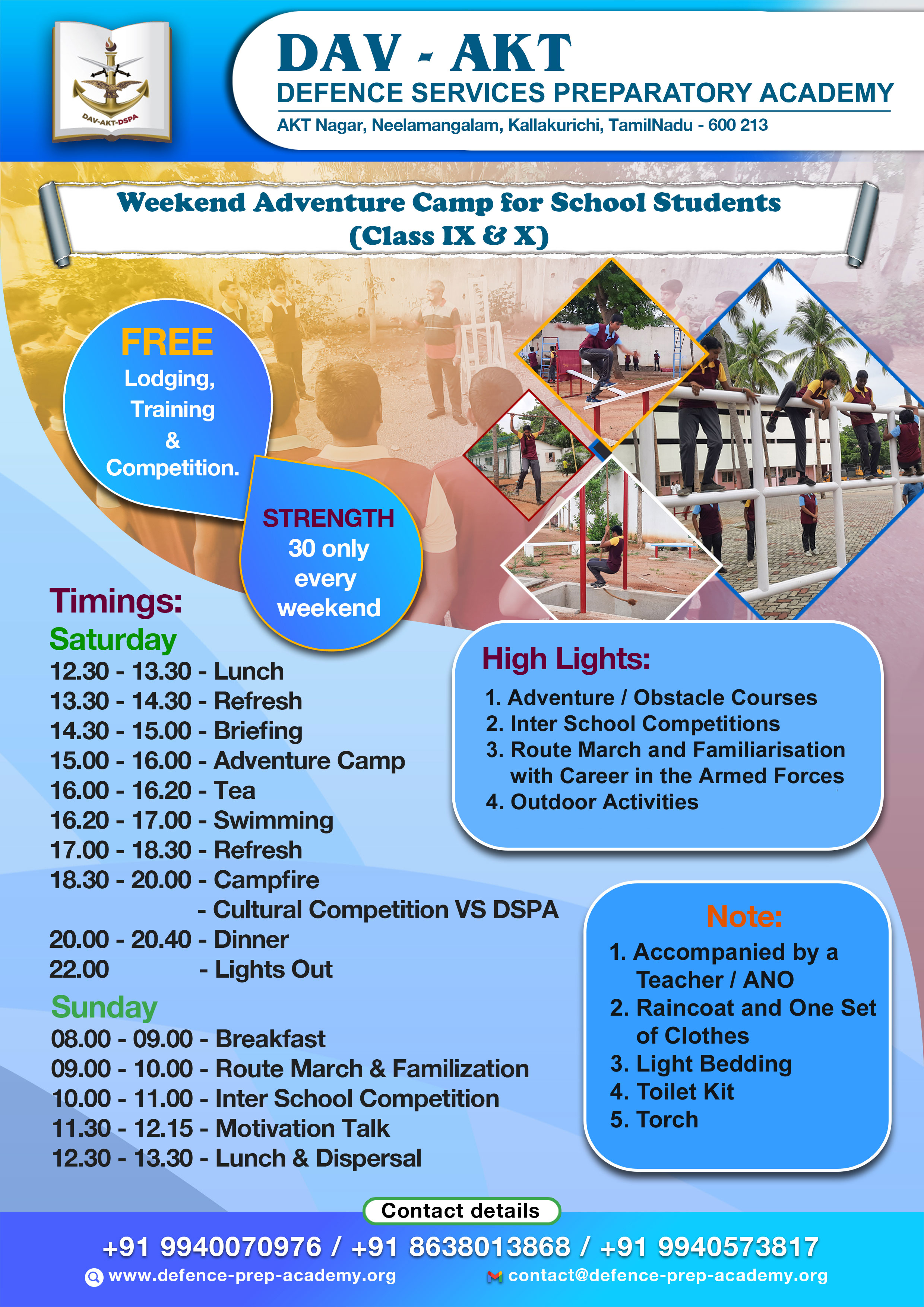 DSPA hereby invites schools to come to our campus at Kallakurichi TN for a Weekend Adventure Camp.